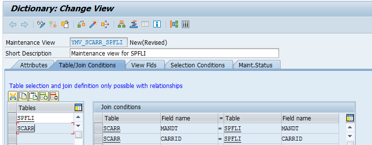 Steps are same as above example except join condition, further database view Maintenance status can be ready only. We cannot see output using dictionary tool.